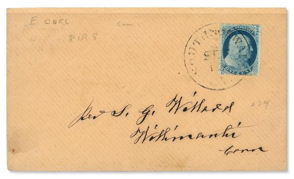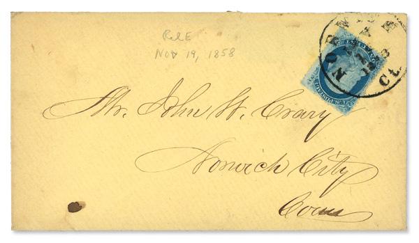 1857, 1¢ blue, type V (Scott 24), Nov. 19, 1858 drop cover, 'NORWICK, CT'., Very Fine, with 2025 P.F. certificate. Scott $48. (Image)