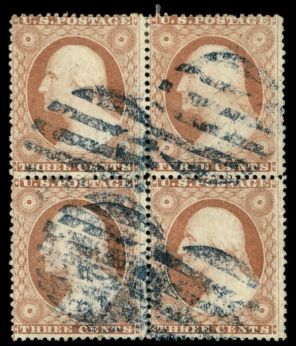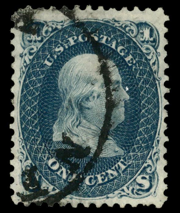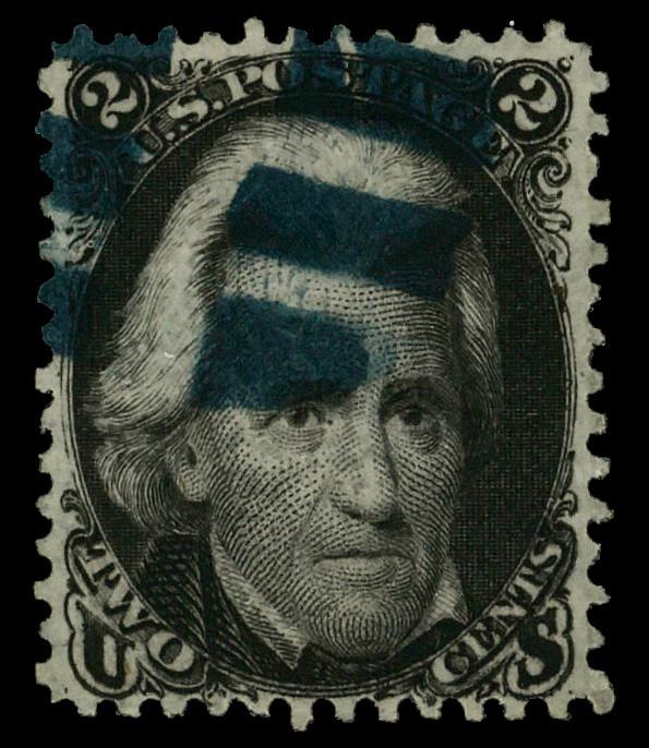 1863, 2¢ black (Scott 73), blue cancel, Fine. Scott $90. (Image)