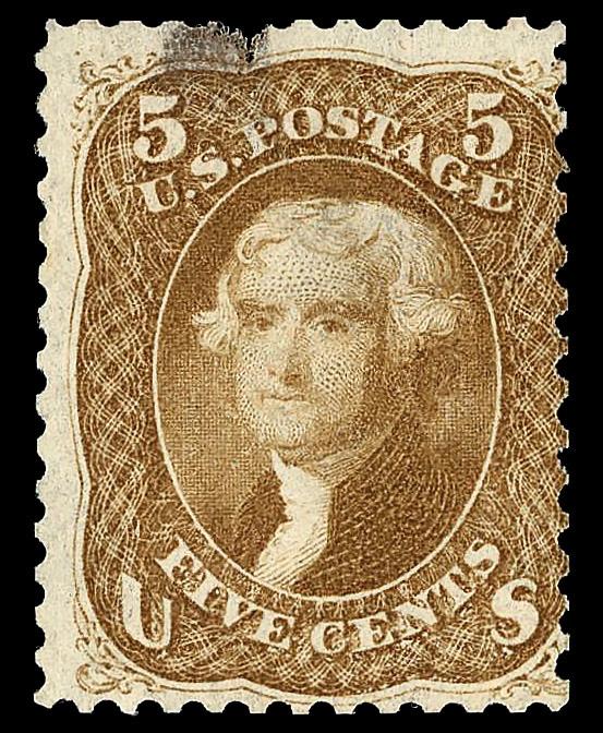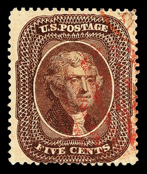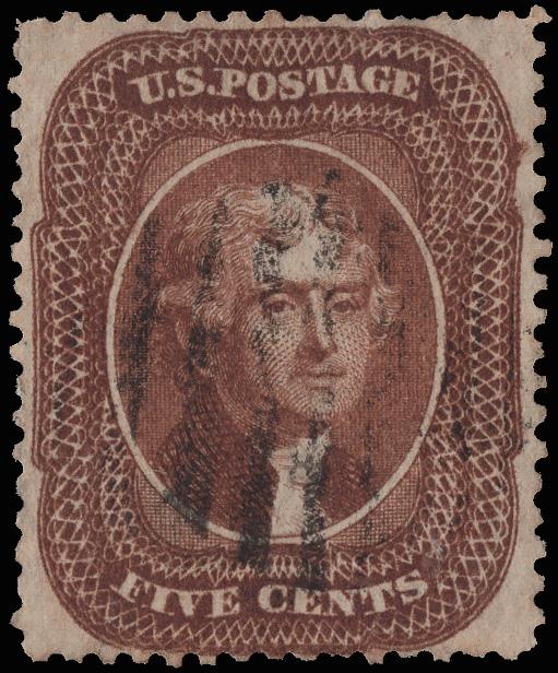 1862, 5¢ red brown (Scott 75), 'PAID' cancel, Very Good to Fine. Scott $440. (Image)