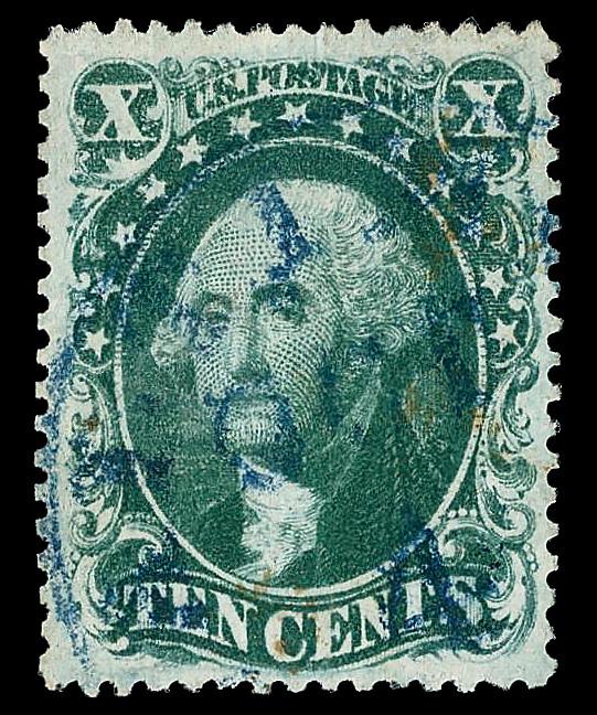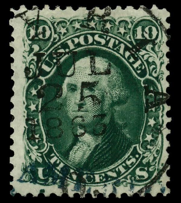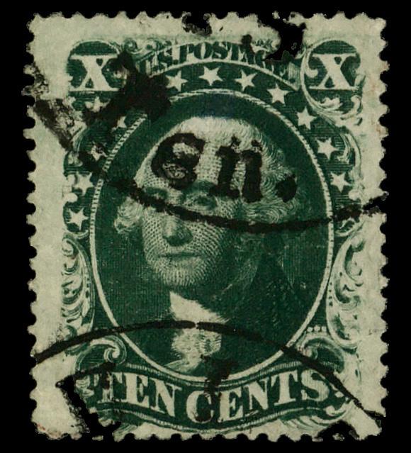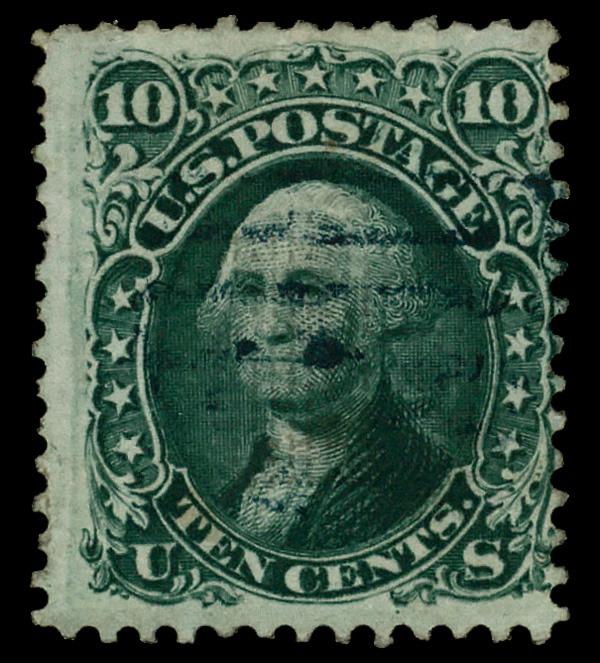 1867, 10¢ green, E. grill (Scott 89), Very Good to Fine. Scott $350. (Image)