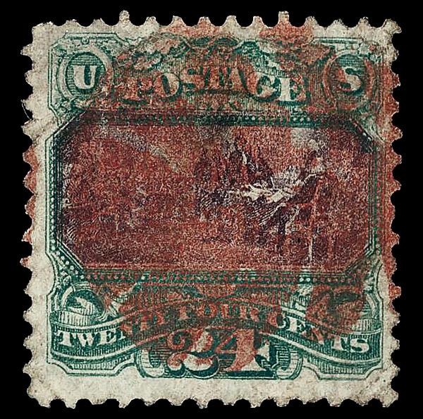 1869, 24¢ green & violet (Scott 120), red cork cancel; faults, Fine to Very Fine, with 2025 P.F. certificate. Scott $1,175. (Image)
