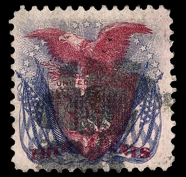 1869, 30¢ ultramarine & carmine (Scott 121); small faults, Fine, with 2025 P.F. certificate. Scott $450. (Image)