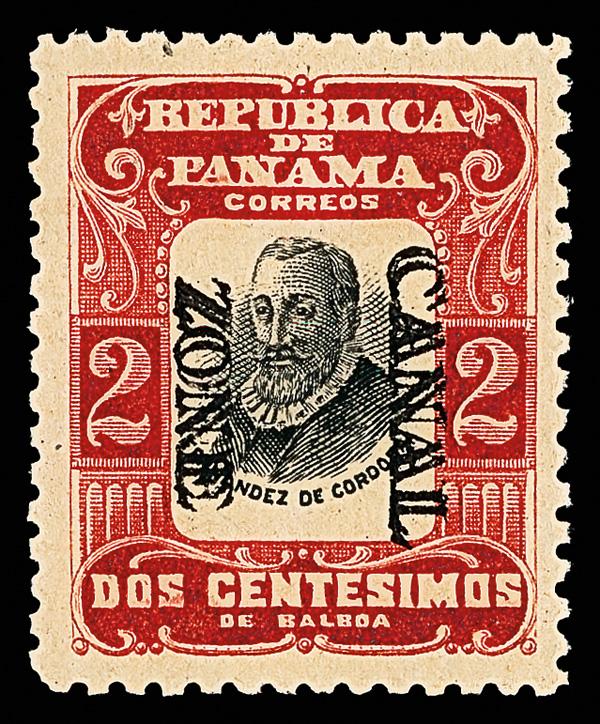 1906, 2c Córdoba, red & black, overprint double (Scott 23c), o.g., lightly hinged (dryish), an attention-grabber with immense color depth on bright paper the overprint clearly doubled; small inclusion at top noted strictly for accuracy, Very Fine, with 1974 A.P.S. certificate. Scott $600. (Image)