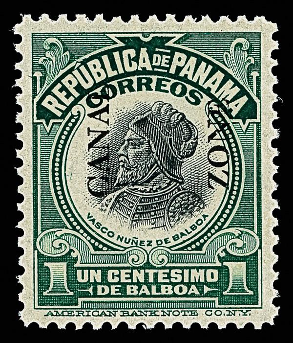 1915, 1c Balboa, green & black, type III overprint (Scott 46), o.g., never hinged, pristine with rich color and clean detail; a pretty stamp, Very Fine. Scott $175 for o.g. (Image)