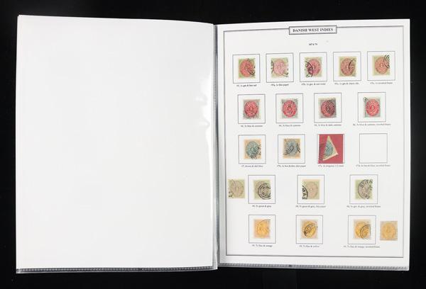 Danish West Indies, Small Classic Collection, 1856-1915, 9 pages on custom album sheets; includes #1, 1a, 2, 3, 4, 5a, 5b, 7b, 7c, 9 (4), 11 (2), 12, 13 (2), 15, 18a, 20, 20b, 25 (4), 27, 28b, 30, 37, 38, 39, 40, 41, 42, 48, 52, 53, 54, 56, 57, 58, J1-J4, J5-J8; a sweet little group; catalog $9,100, Fine to Very Fine. Shipping charges apply - weight 0.9 lbs. (Video for this lot) (Image)