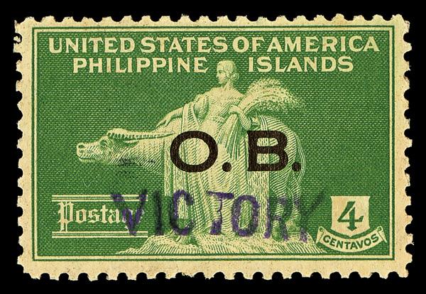 Official, 1944, 4c yellow green, handstamped "VICTORY" in violet (Scott O40), unused without gum, Post Office fresh with bold color and sound centering, Very Fine, with 2020 P.F. certificate for block of four, this position 4. Scott $45 for o.g. (Image)