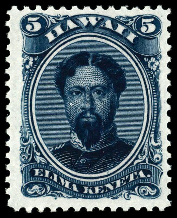 1890, King Kamehameha V, 5¢ deep indigo (Scott 52C), o.g., never hinged, Fine to Very Fine. Scott $280. (Image)