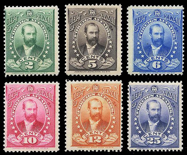 Hawaii, Officials, 1896, 2¢ to 25¢ complete (Scott O1-O6), set of 6, o.g., never hinged, Fine to Very Fine. Scott $600. (Image)