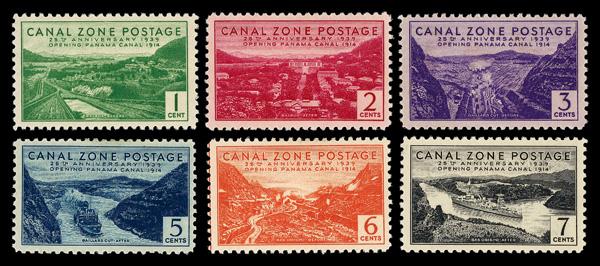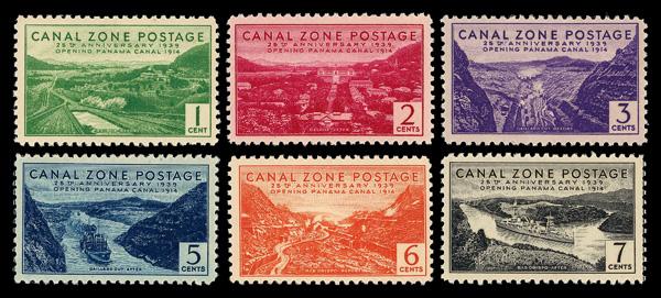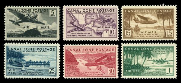 Airmail, 1939, Panama Canal Opening 25th Anniversary, complete (Scott C15-C20), set of 6, o.g., never hinged (minor gum skips), Very Fine. Scott $92. (Image)
