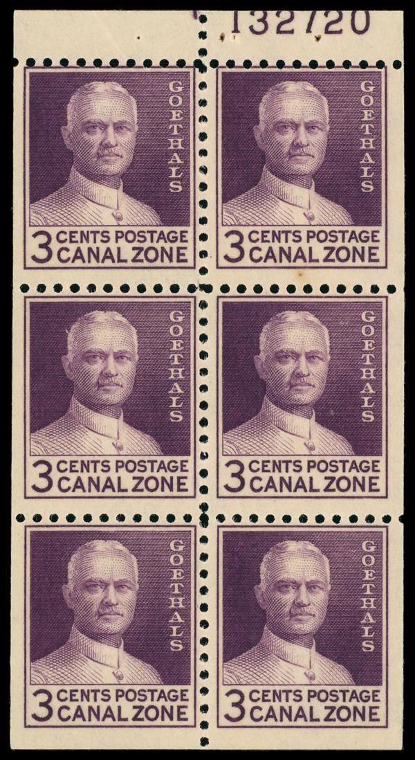 1934, 3c red violet, booklet pane (Scott 117a), booklet pane of 6 with plate number, o.g., never hinged, Fine. (Image)