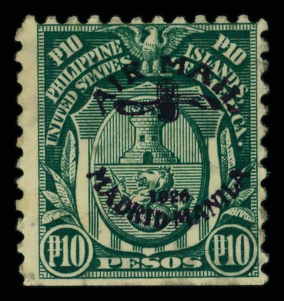 Airmail, 1926, 10p Madrid-Manila Flight (Scott C15), disturbed o.g.; trimmed at bottom, Very Good to Fine, signed. Scott $1,000. (Image)