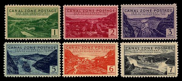 1939, Canal Anniversary complete (Scott 120-135), set of 16, o.g., lightly hinged, Fine to Very Fine. Scott $163. (Image)