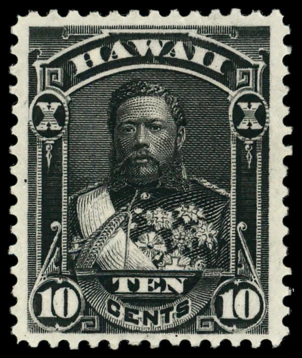 1882, King David Kalakaua, 10¢ black (Scott 40), o.g., paper hinge remnant, Very Fine, with 2023 P.F. certificate graded F-VF 75. SMQ F-VF 75; $40. Scott $50. (Image)