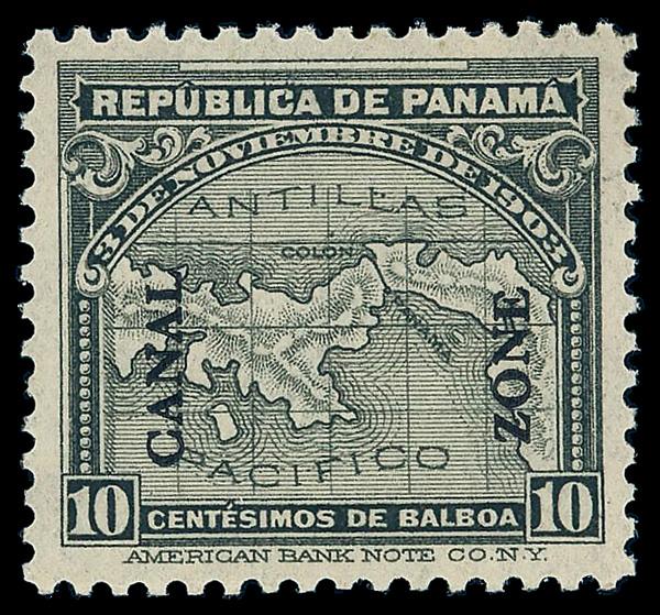 1914, 10c Map, gray (Scott 37), o.g., never hinged, Extremely Fine. Scott $48. (Image)