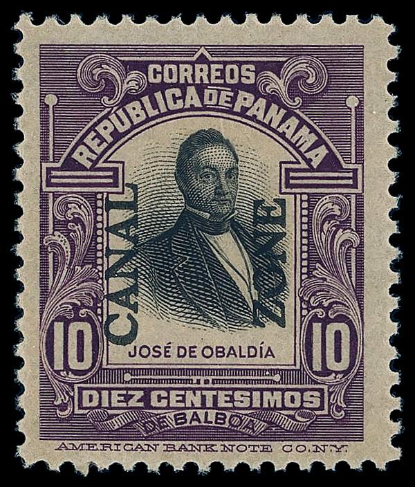 1916, 10c Obaldía, violet & black, type II overprint (Scott 41), o.g., never hinged, Very Fine. Scott $60. (Image)