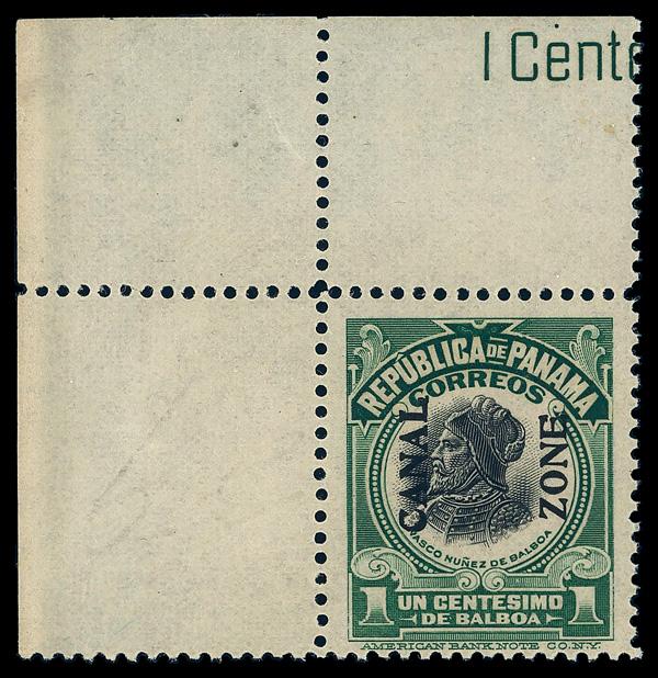 1918, 1c Balboa, green & black, type IV overprint (Scott 52), o.g., never hinged, Very Fine. Scott $33. (Image)