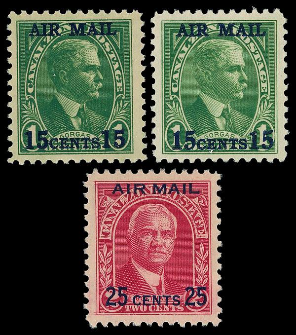 1929-31, 15c-25c surcharges, 'AIR MAIL' overprint, complete (Scott C1-C3), set of 3, o.g., never hinged (#C3 LH), Extremely Fine to Superb. Scott $135. (Image)