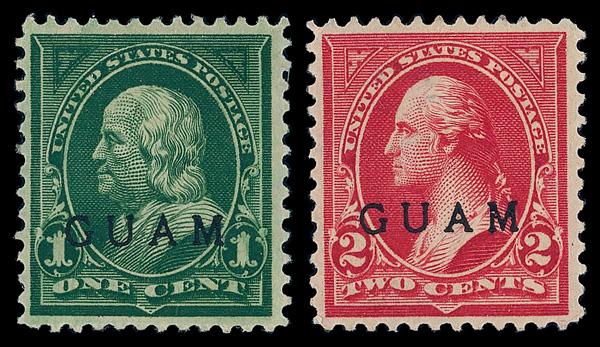 1899, 1¢ Franklin, deep green & 2¢ Washington, red (Scott 1-2), o.g., heavy hinge remnants, Very Fine. Scott $38. (Image)