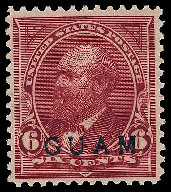 1899, 6¢ Garfield, lake (Scott 6), o.g., lightly hinged, Fine to Very Fine. Scott $125. (Image)