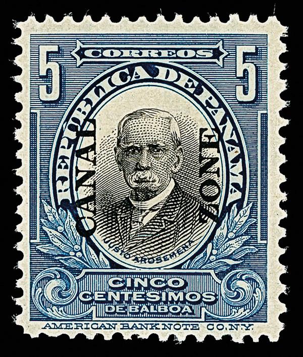1921, 5c Arosemena, deep blue & black, type V overprint (Scott 57), o.g., lightly hinged, clean and sound on remarkably bright paper, Fine to Very Fine. Scott $300. (Image)