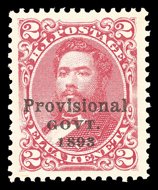 1893, Provisional Govt., 2¢ rose, black overprint (Scott 66), oversized margins, striking color depth, the SMQ doesn't currently list this issue, o.g., never hinged, Extremely Fine, with 2019 P.S.E. certificate graded XF 90J. Scott $4. (Image)