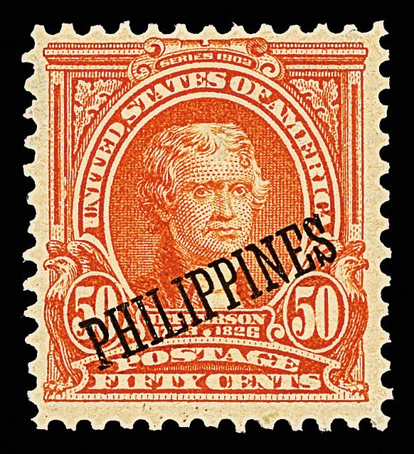 1903, 50¢ orange (Scott 236), o.g., never hinged, Post Office fresh in unadulterated color, sound with perforations clear of design all around, Fine to Very Fine. Scott $275. (Image)