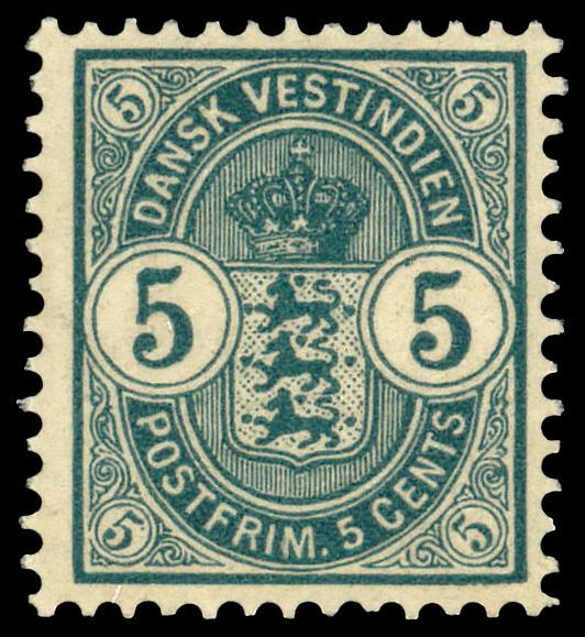 1900, Arms 5c light blue (Scott 22), single, o.g., never hinged, Fine to Very Fine. Scott $80. (Image)