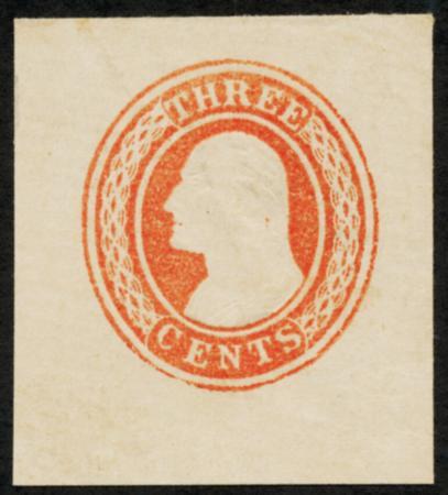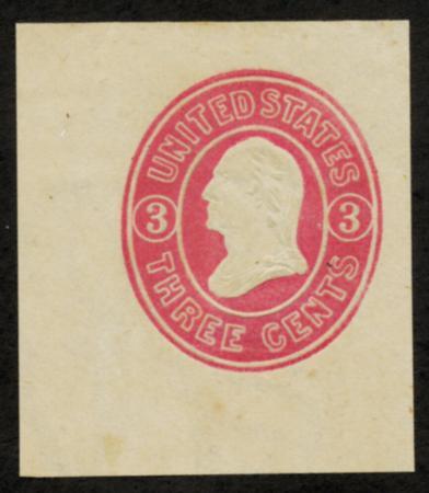 US - Postal Stationery. Scott U1, LH, full corner, PNB, 36x40, 1853-55 3c red CV $350.00 (Image)