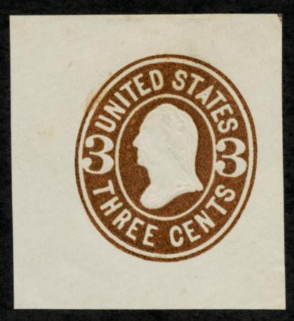 US - Postal Stationery. Scott U61, PNB, 34x36, 1865 3c brown, buff CV $50.00 (Image)