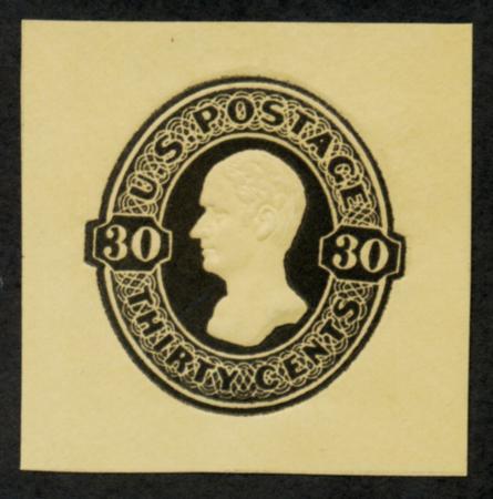 US - Postal Stationery. Scott U205, LH, PNB, 37x37, 1874-86 30c black, amber CV $70.00 (Image)