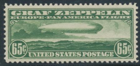 US - Airmails. Scott C13, XF NH, with a very, very light spot of DG, 1930 65c Graf Zeppelin CV $250.00 (Image)