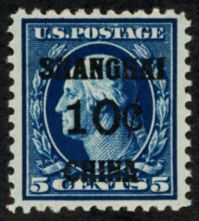 US - Offices in Shanghai. Scott K5, VF LH, 1919 10c on 5c blue CV $60.00 (Image)