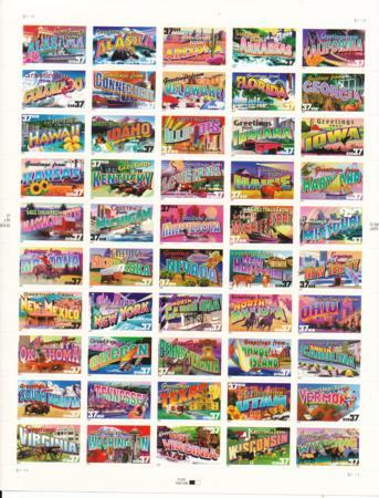 US - Mint Sheets. Scott 3561-3610, VF NH, sheet of 50, 2002 Greetings from America CV $35.00 (Image)