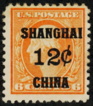 US - Offices in Shanghai. Scott K6, Fine H, 1919 12c Shanghai Ovpt. CV $80.00 (Image)
