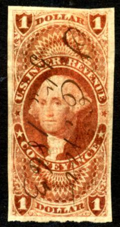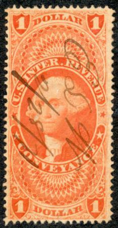 US - Revenues/Documentaries (R). Scott R66c, F-VF, $1 Conveyance CV $27.50 NH (Image)