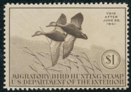 US - Migratory Bird Hunting (RW). Scott RW7, F-VF H, 1940 $1 sepia CV $115.00 (Image)