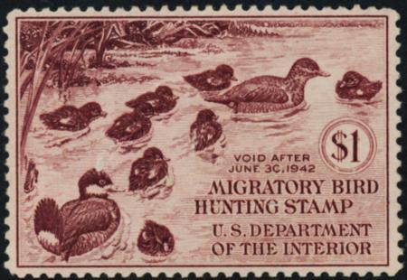 US - Migratory Bird Hunting (RW). Scott RW9, F-VF LH, 1942 $1 violet brown CV $95.00 (Image)