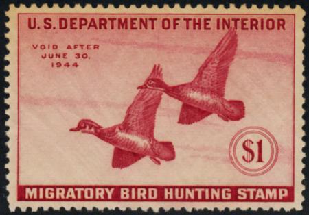 US - Migratory Bird Hunting (RW). Scott RW10, XF LH, 1943 $1 deep rose CV $55.00 (Image)