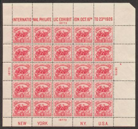 US - Post 1920 Issues (Sc 548 on). Scott 630, XF NH, Exceptionally well centered for this difficult item, one stamp in top row with sm thin, 1926 White Plains Souvenir Sheet of 25 CV $475 as VF only (Image)