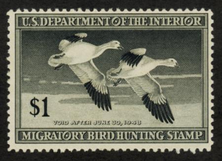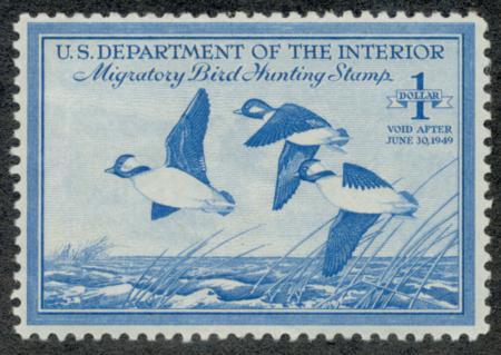 US - Migratory Bird Hunting (RW). Scott RW15, F-VF LH, 1948 $1 bright blue CV $60 NH (Image)