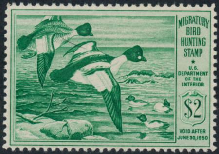 US - Migratory Bird Hunting (RW). Scott RW16, F-VF HR, 1949 $2 Goldeneye Ducks CV $70 NH (Image)