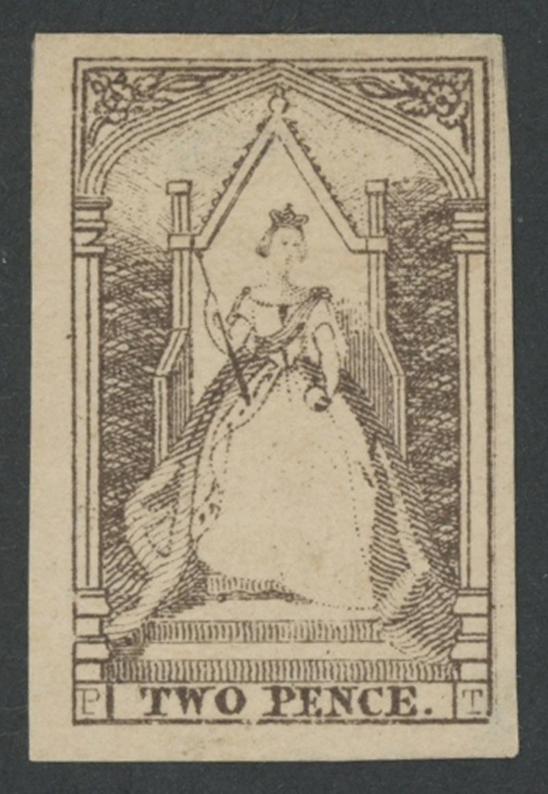 1854-56 Queen-on-Throne Campbell & Co Printings 2d purple-brown with Minor Loss of Detail Behind the Throne SG 19, margins good to large, Cat £950 (Image1)