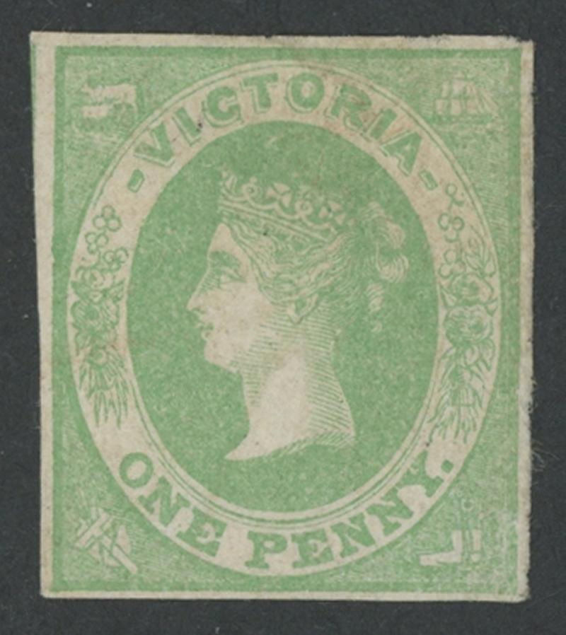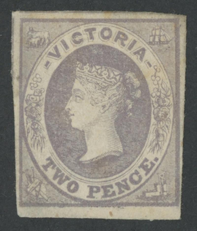 1863-81 Laureates 4d rose Single-Lined '4' Wmk SG 110 with Major Error 'VICTORIA' Omitted, tied to small piece by part-duplex '3' of Castlemaine, a couple of trimmed perfs at lower-right don't detract. Ex Charles Lathrop Pack (manuscript "Pack paid £100" on reverse: a fearsome amount before World War II), Nick Holness - sold at our auction of 22.4.2006 for $2645 (Sale 121 Lot 398) - and 'Dubois' (I), sold for SFr1098. A dramatic variety, caused by faulty makeready, deserving of listing by Stanley Gibbons: compare Half-Lengths 'TWO PENCE' Omitted SG 15b, priced at £15,000. Illustrated by Geoff Kellow at page 162 where he states "...perhaps six used copies are known". However, we know of only one other, and there may be a third. (Image1)