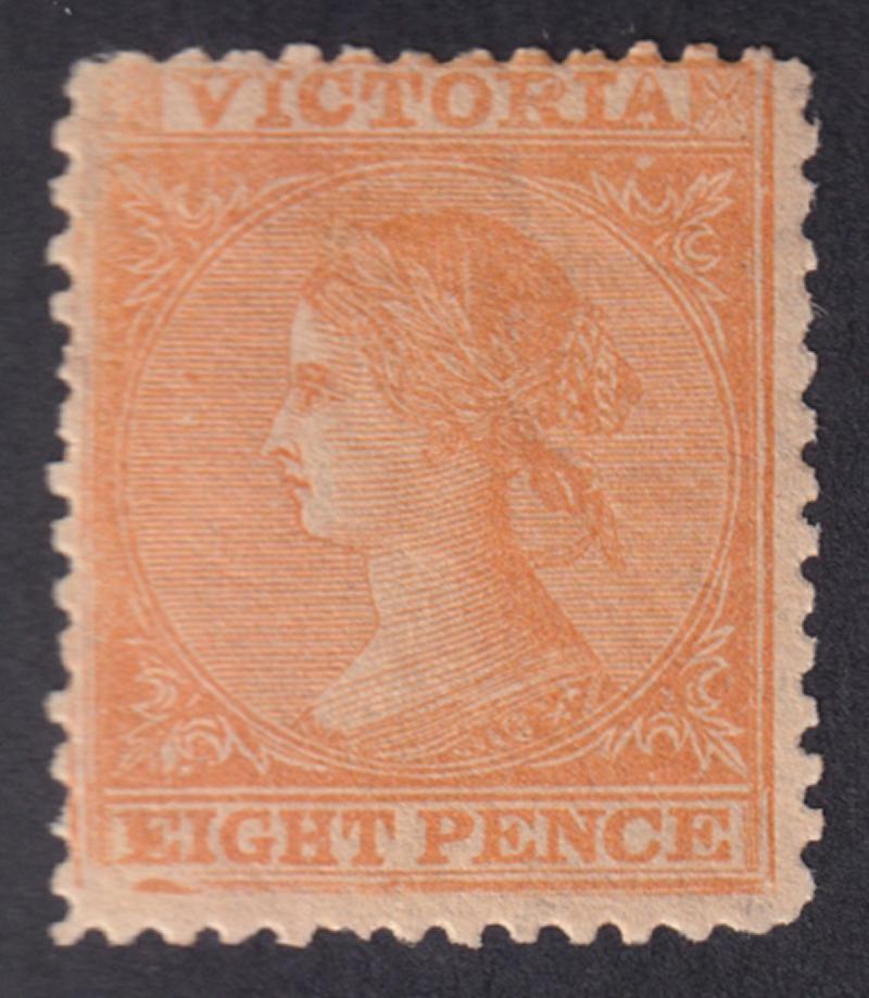 1863-81 Laureates Single-Line Numeral Watermarks 8d orange SG 112, unusually well-centred, large-part gum, Cat £950. One of the finest examples we have handled of this scarce stamp. (Image1)