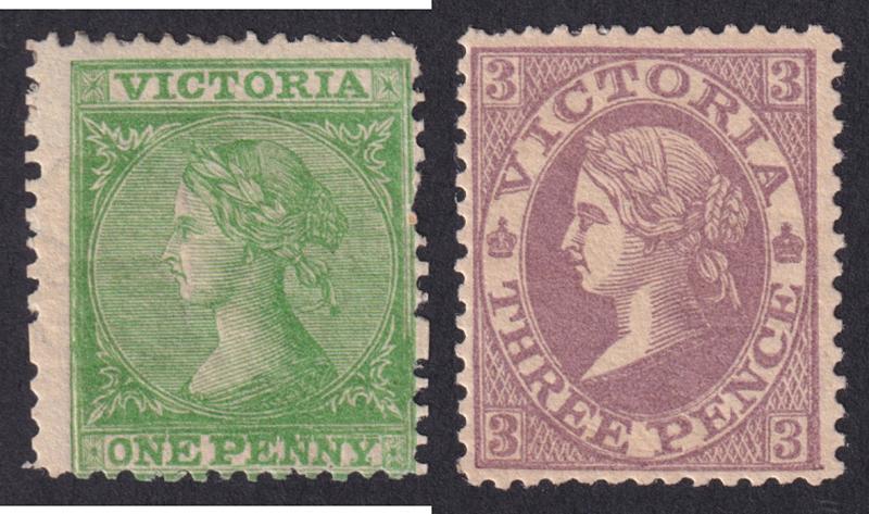 1863-81 Laureates Emergency Printings on De La Rue Paper with Incorrect Single-Line Watermark '8' 1d bright yellow-green (light bend but very fresh) & 3d lilac (unusually well-centred & superb) SG 115 & 118, large-part or virtually full gum, Cat £1200. Ex 'Dubois' (Part III), where only the 3d was mentioned: sold for SFr183. (Image1)