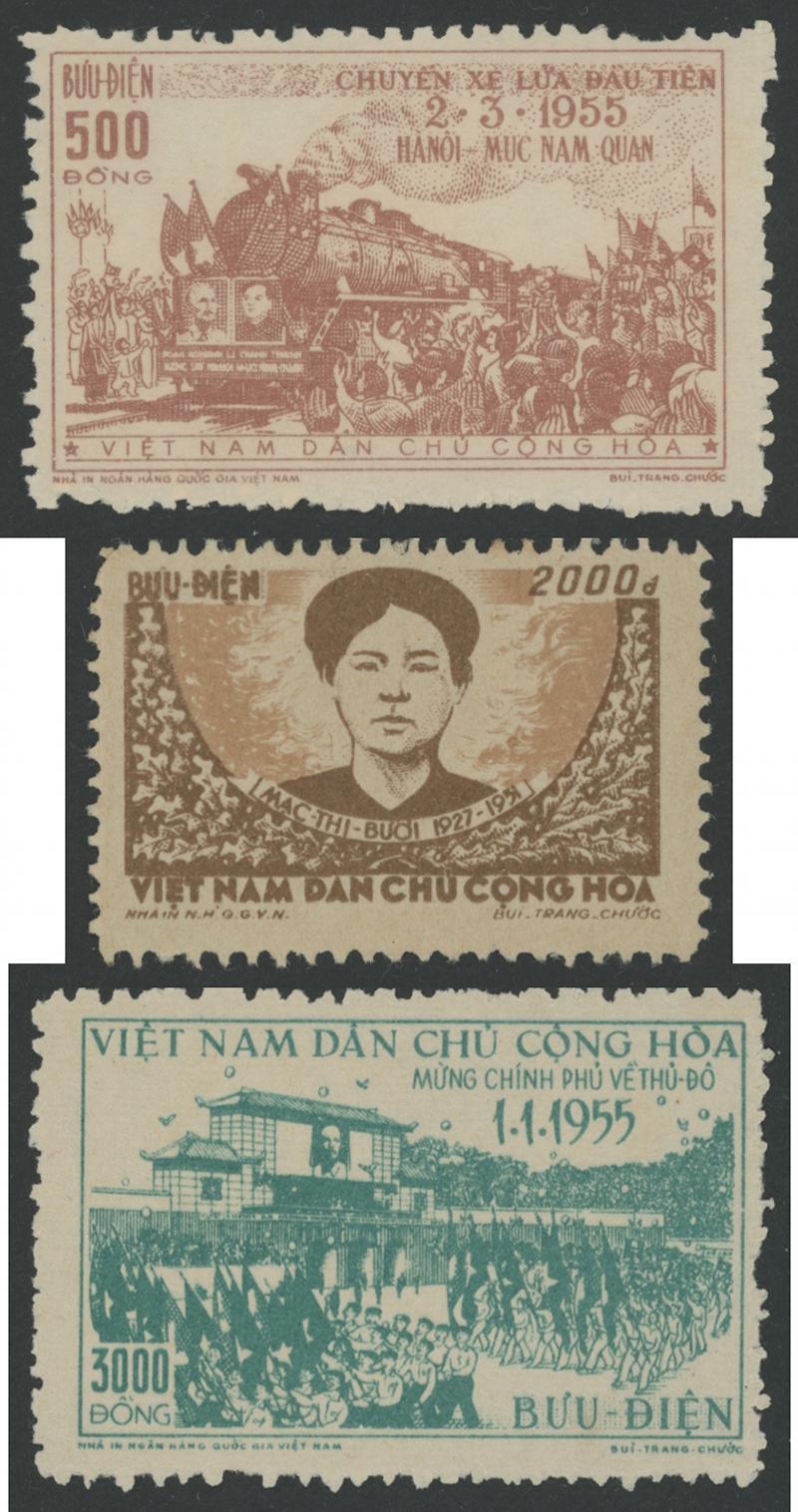 NORTH VIETNAM: 1956 Government Return to Hanoi 1000d to 3000d set SG N42-N45, centring variable & characteristic rough perfs, the 1000d with a coupe of very light marks on the reverse, no gum as issued, Cat £375.