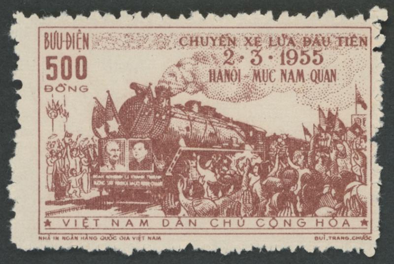 NORTH VIETNAM: 1956 Hanoi-China Railway Re-Opening 100d to 500d set SG N38-N41, centring variable & characteristic rough perfs, no gum as issued, Cat £170.