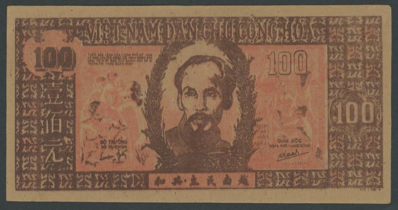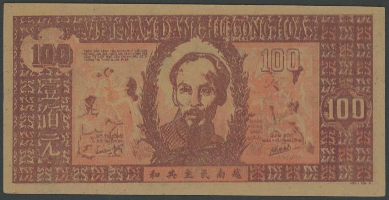 1948 100 dong purple Pick 28a Without Watermark, serial 'MR 038 G KT182', aUnc/Unc. Not priced for Unc. (Image1)