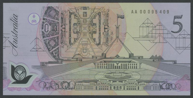 Banknote collection including Australia $5 1992 Fraser/Cole R214F First Prefix serial 'AA00 095409' (teller fold & bend); Canada 1954 $1 Coyne/Towers 'Devils face' in Hairdo, 1955 $2 Beattie/Coyne; Ceylon 1940 KGVI 1 rupee, 1942 25c France & Belgium WWI German occupation fractionals; Egypt 1940 5 piastres (3); Fiji KGVI 1943 5/-, and 1946 10/-; Italy 1948 500 lira, & 1000 lira; Japanese Invasion Money (23) including Oceania 1/-; Malaya 1941 KGVI $5; Netherlands-Indies 1943 (5) to 10 rupiah; Syria 1939 £1; condition variable, mostly circulated.