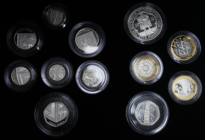 World coins in carton with Great Britain Proof sets 1985 x5, 1986-87, silver £1 1985 Piedfort, 1986 Unc set, and 2009 silver Twelve-Coin Proof set cased with cert & outer (fog spot on 50p); USA $1 1984S silver Proof x3; plus 3kg of World travellers change; some packaging aged, condition variable. Weighs 8kg.